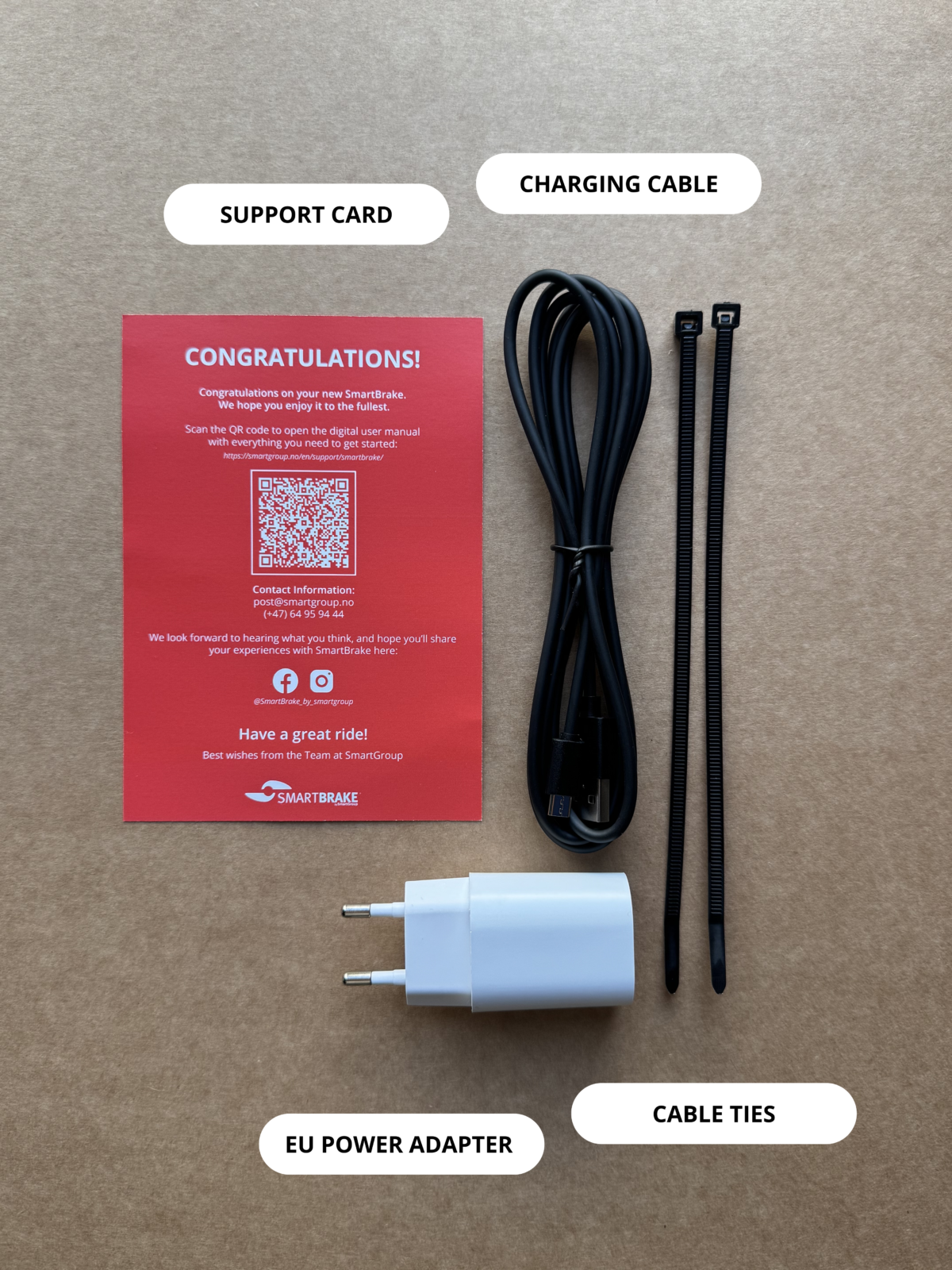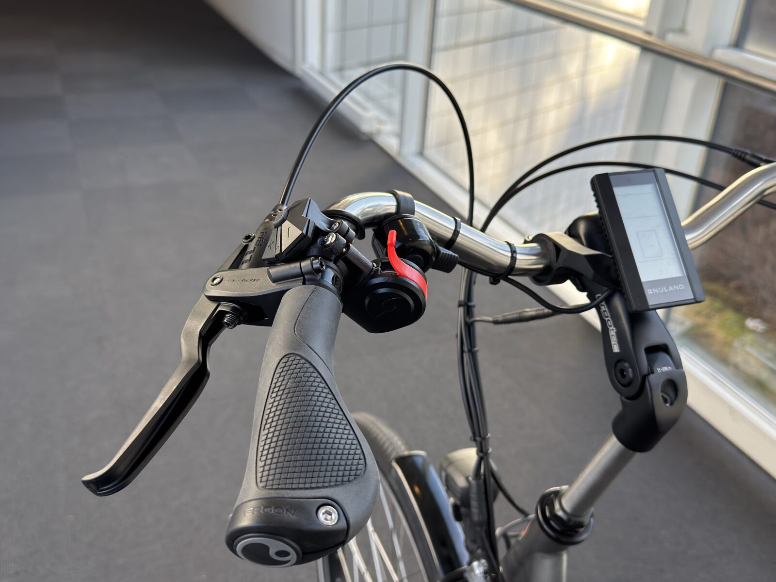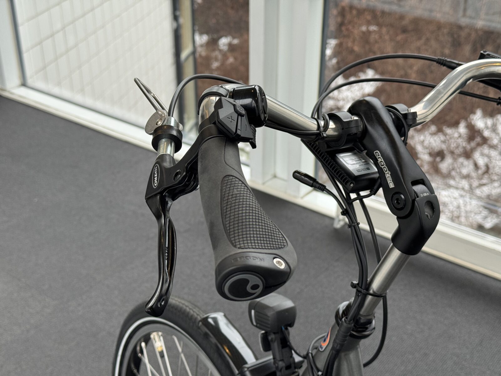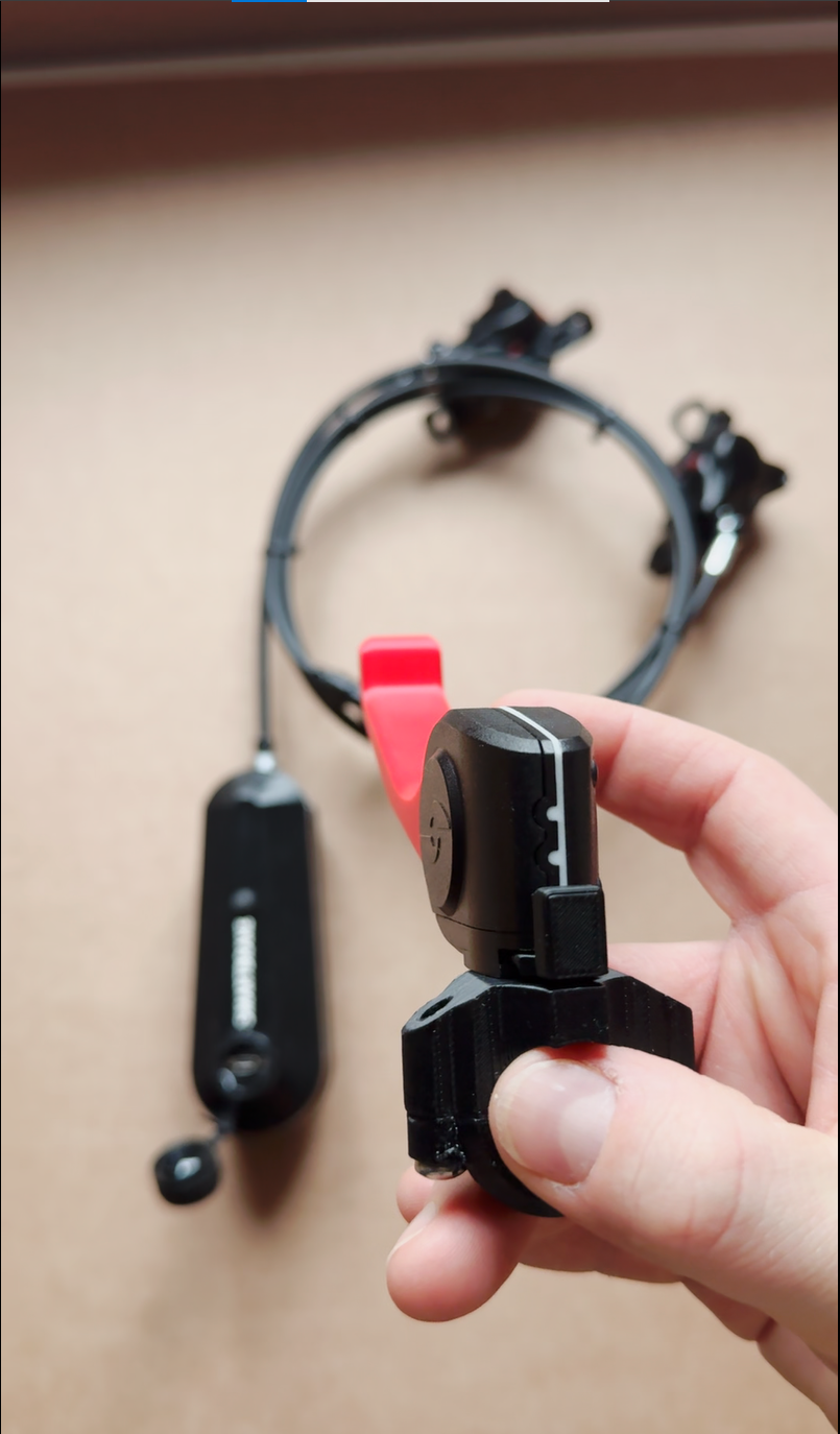 Monter kontrolleren i en stabil og ergonomisk posisjon for syklisten eller ledsageren. Håndkontrolleren levers løst sammen med instruksjonsheftet og laderen.